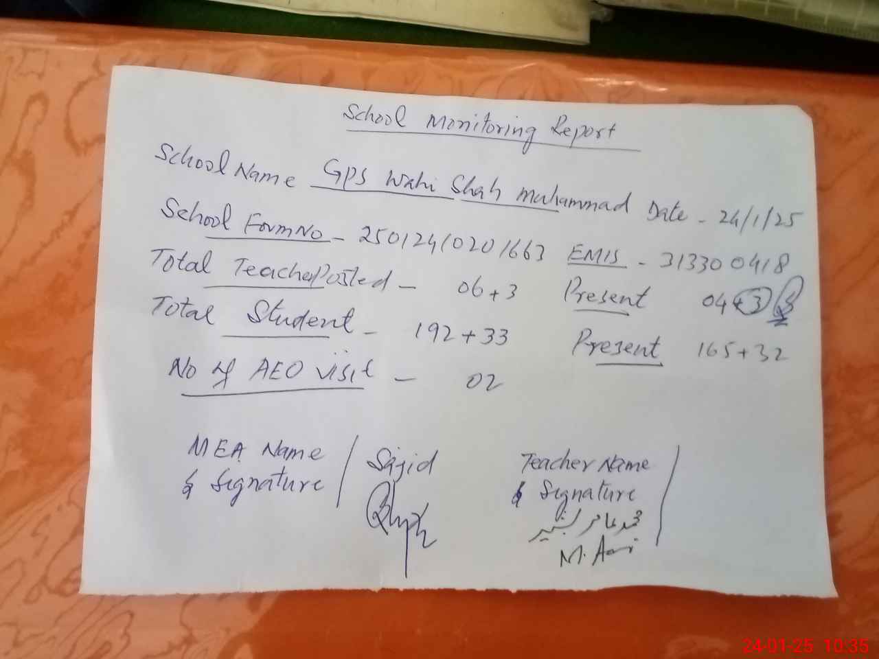 | EMIS Code: 31330418 | Name of School: GPS BASTI WAHI SHAH MUHAMMAD | |||