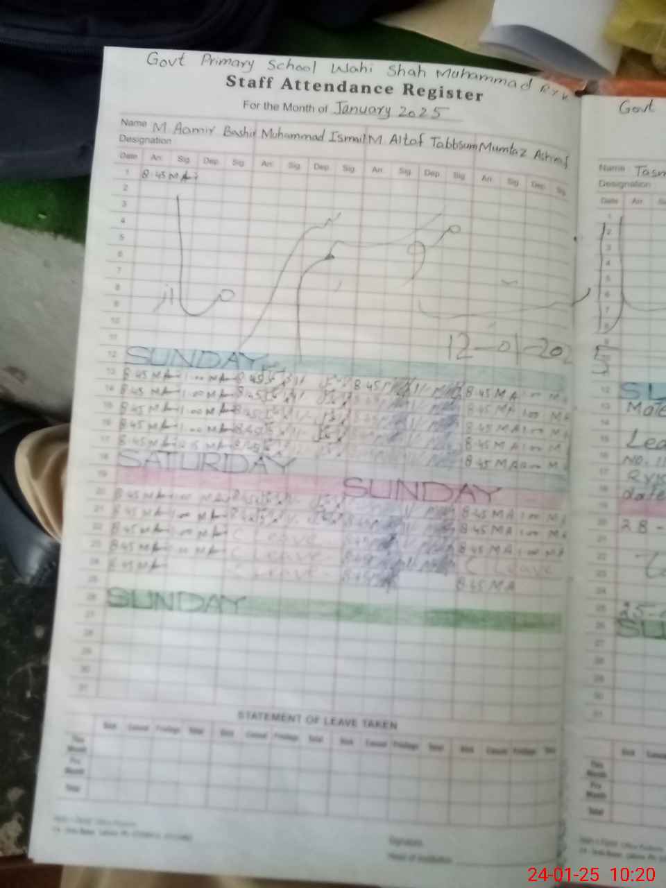 | CNIC | Full Name | Designation | R/C | Absence During Last Calender Month |