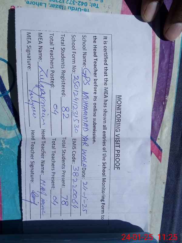 | EMIS Code: 38220064 | Name of School: GPS MUHAMMAD YAR WALA | |||