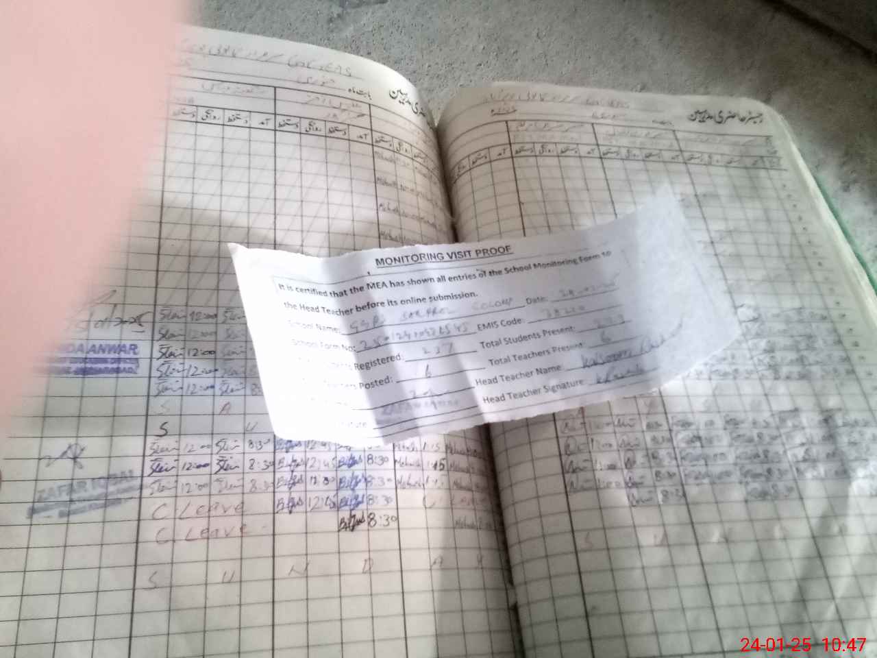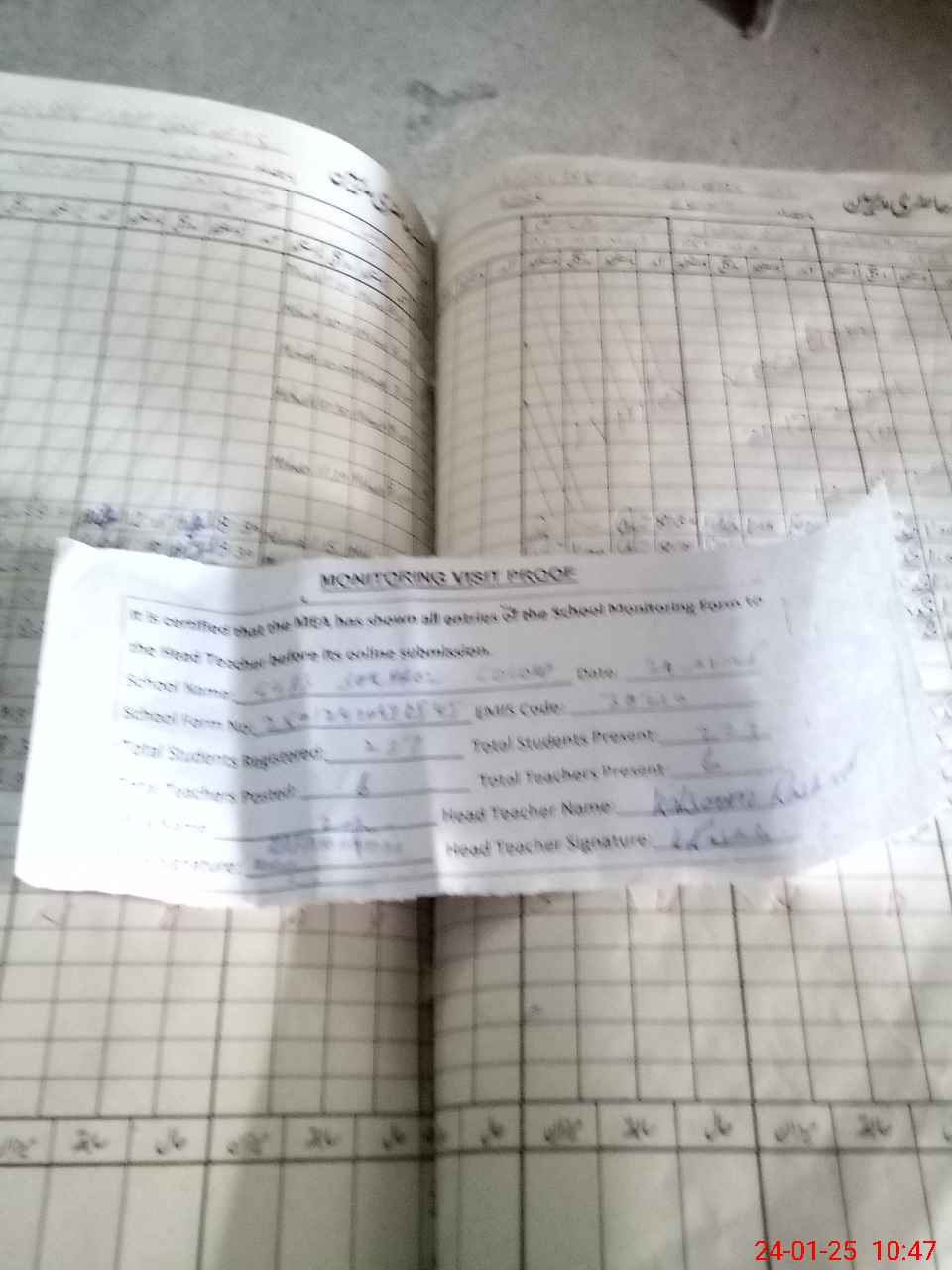 | Attendance Register | Head Teacher | MEA with School | Visit Proof |