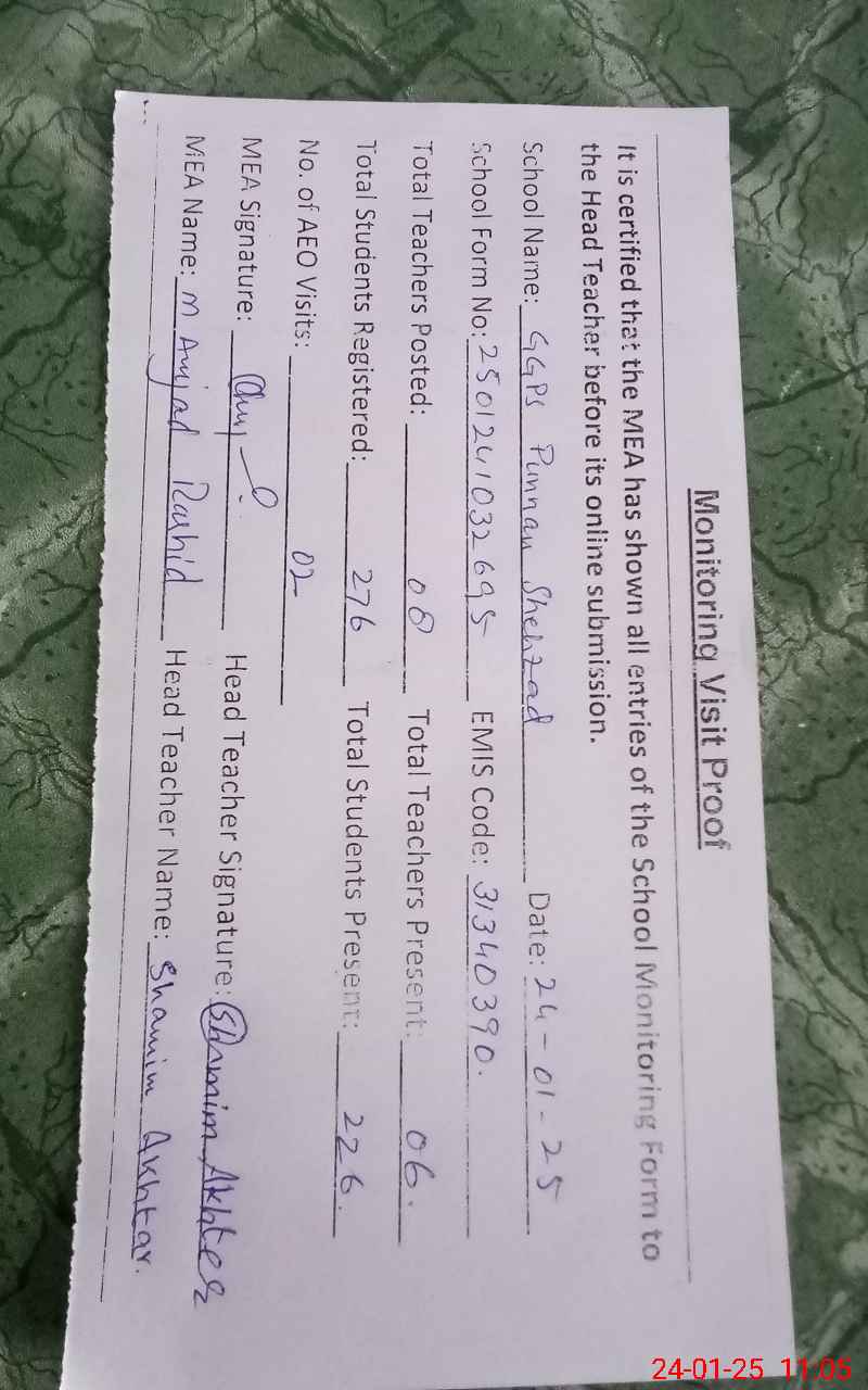 | EMIS Code: 31340390 | Name of School: GGPS BASTI PUNNUN SHAHZAD | |||