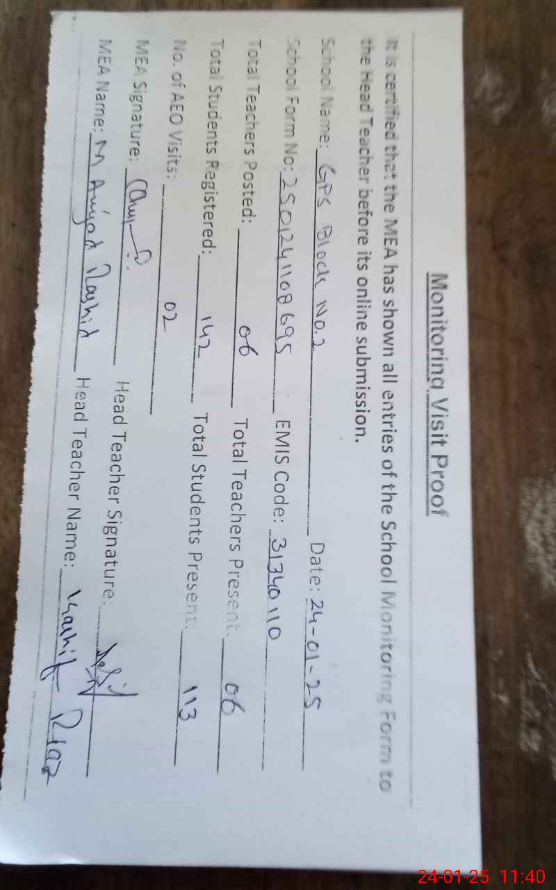 | EMIS Code: 31340110 | Name of School: GPS BLOCK NO. 2 MUHAJIR COLONY | |||