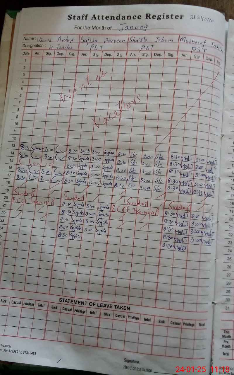 | Name: Us**** Ar**** Designation: (School Headmaster's/Headmistress's) PST/PTC/JV Phone/Cell Number: 03**** |
