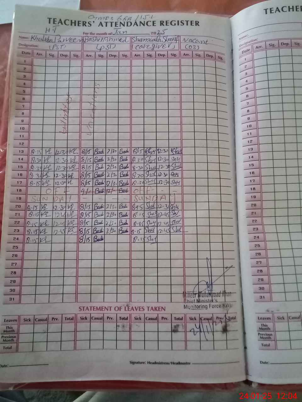 | Name: Kh**** Pa**** Designation: (School Headmaster's/Headmistress's) PST Phone/Cell Number: 03**** |