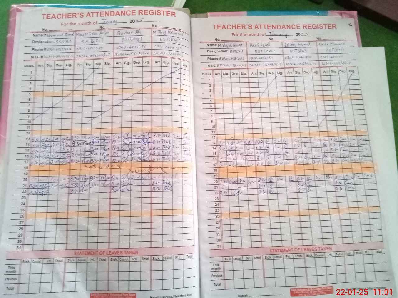 | CNIC | Full Name | Designation | R/C | Absence During Last Calender Month |