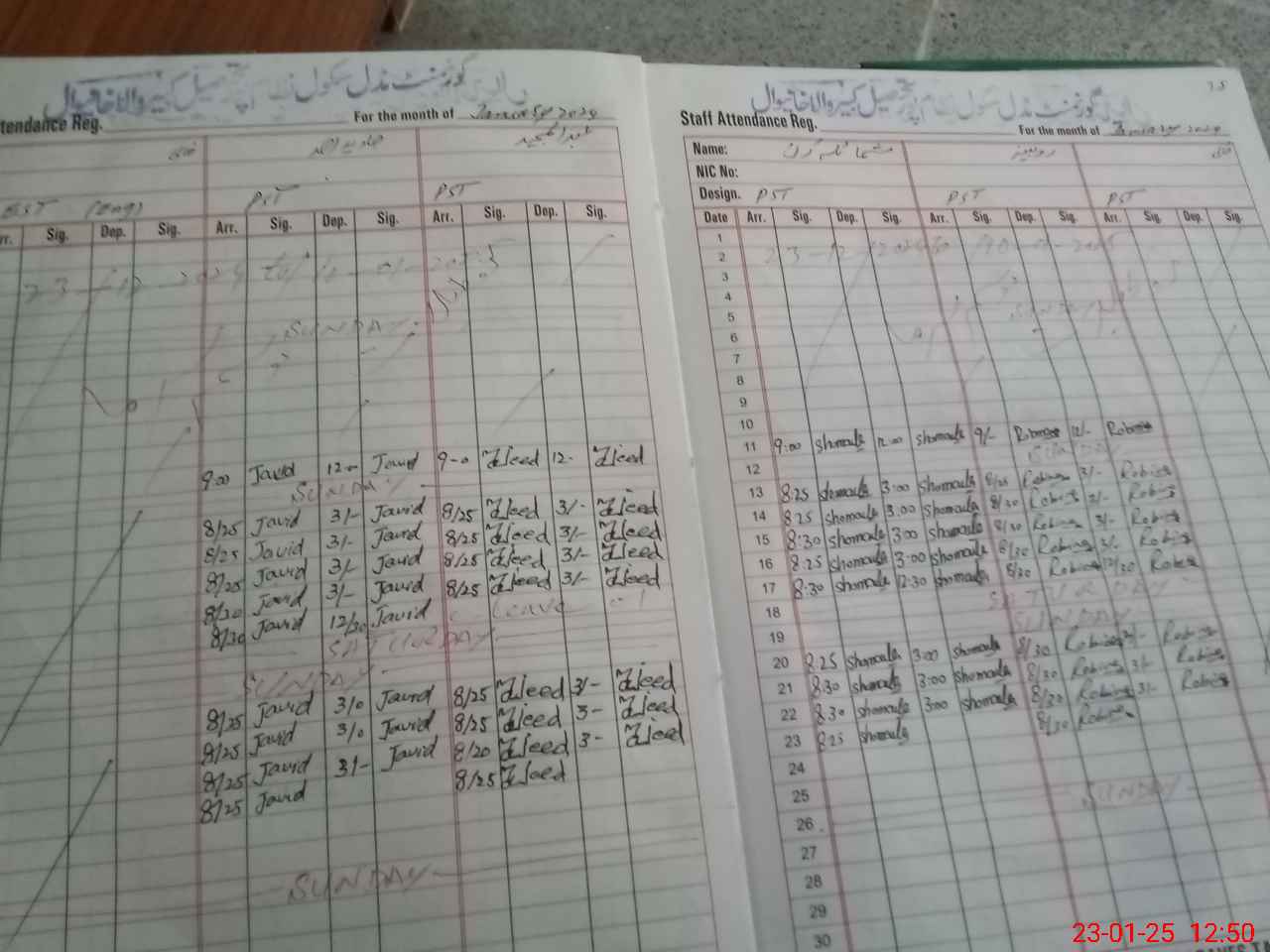 | Name: MJA**** URRE**** Designation: (School Headmaster's/Headmistress's) S.S.T.(G) Phone/Cell Number: 03**** |
