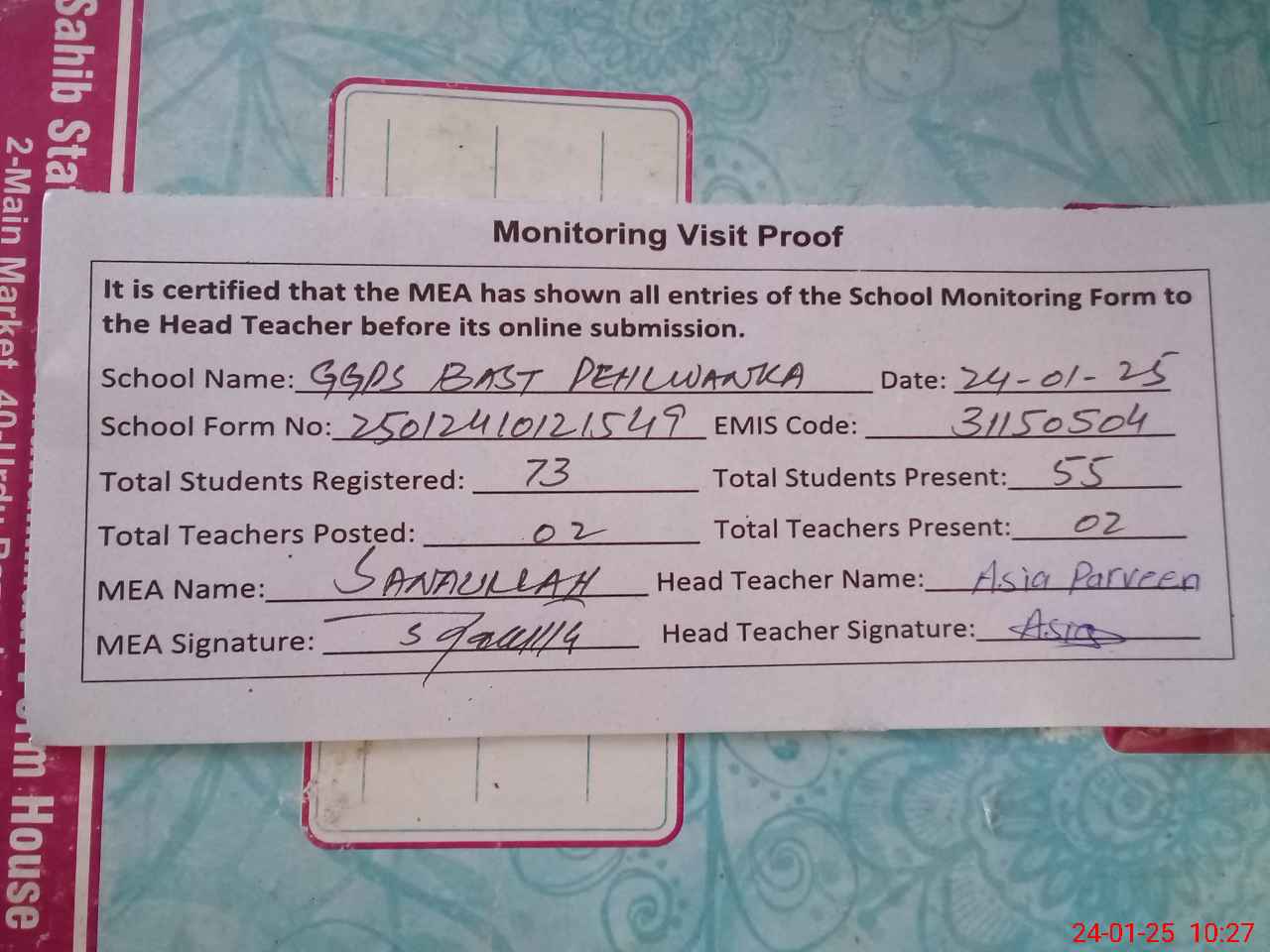 | EMIS Code: 31150504 | Name of School: GGPS BASTI PAHALWANKA | |||