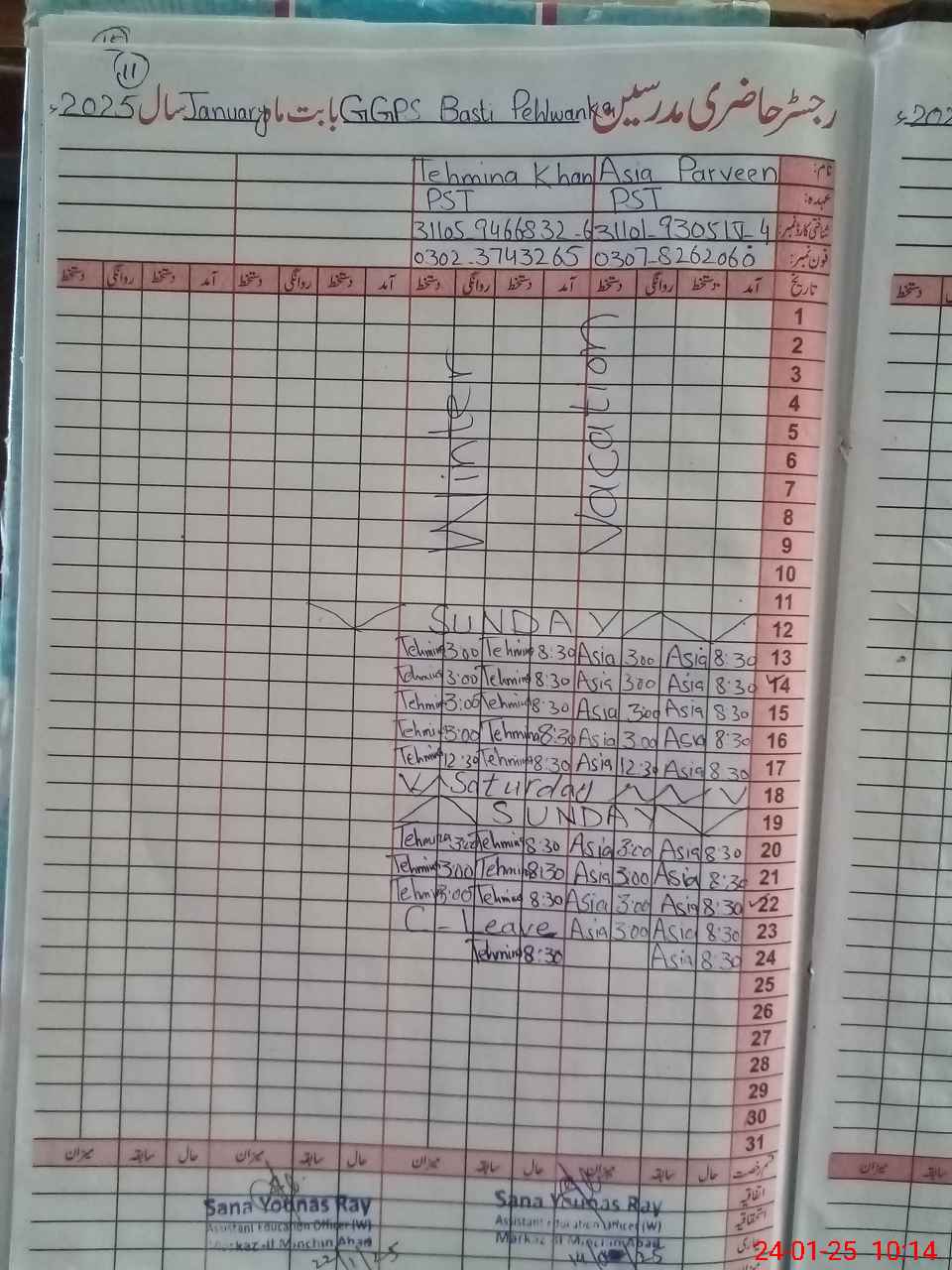 | Name: As**** Pa**** Designation: (School Headmaster's/Headmistress's) PST Phone/Cell Number: 03**** |