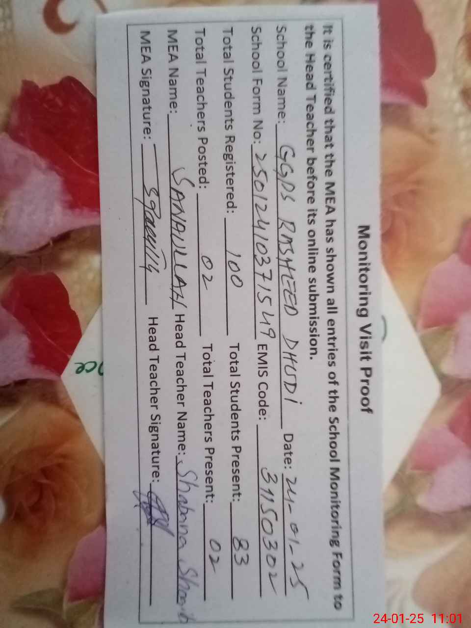 | EMIS Code: 31150302 | Name of School: GGPS RASHEED DHUDDI | |||