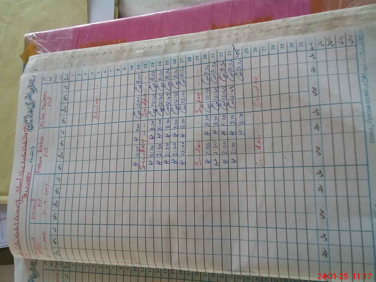 | CNIC | Full Name | Designation | R/C | Absence During Last Calender Month |