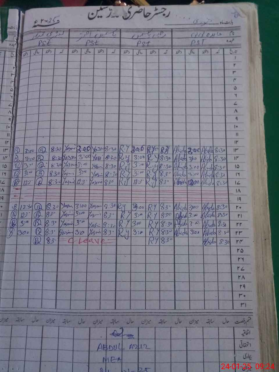 | 38**** | Ya**** Ak**** | PST | Regular | 0 | 0 | 0 | 0 | 0 | 0 | 0 | 0 | 0 | Absent (Un-Authorized) |