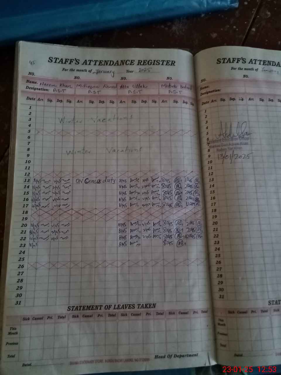 | CNIC | Full Name | Designation | R/C | Absence During Last Calender Month |