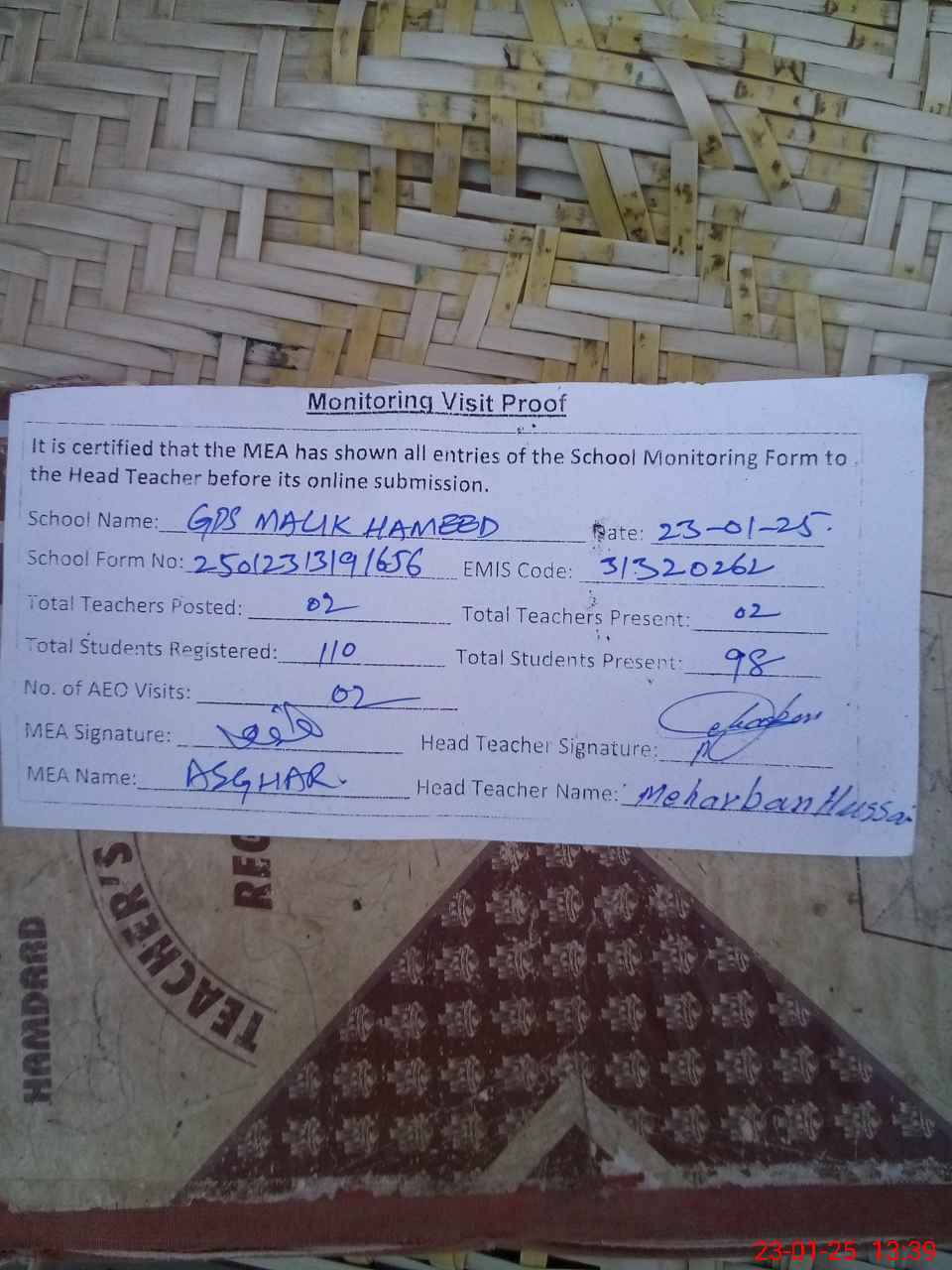 | EMIS Code: 31320262 | Name of School: GPS MALIK HAMEED | |||