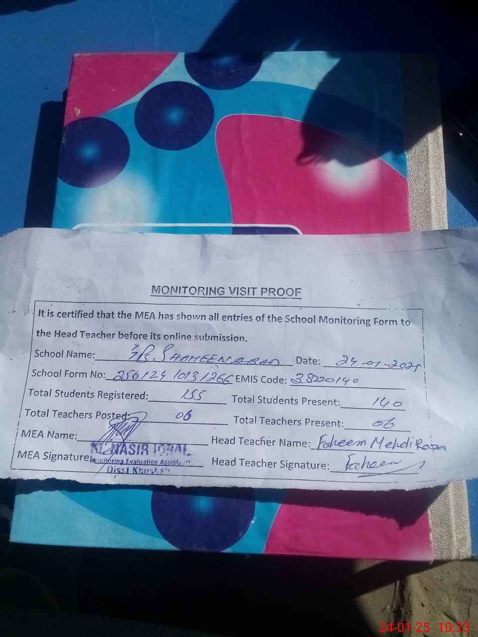 | EMIS Code: 38220140 | Name of School: GPS SHAHEEN ABAD | |||