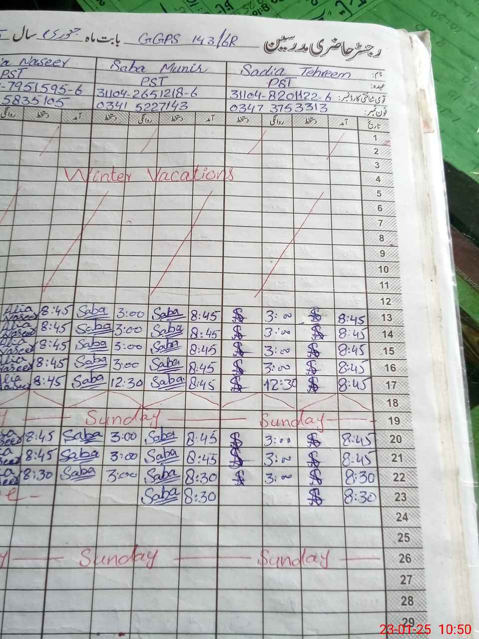 | Name: SA**** TA**** Designation: (School Headmaster's/Headmistress's) PST Phone/Cell Number: 03**** |