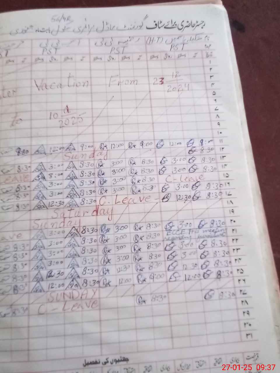 | CNIC | Full Name | Designation | R/C | Absence During Last Calender Month |