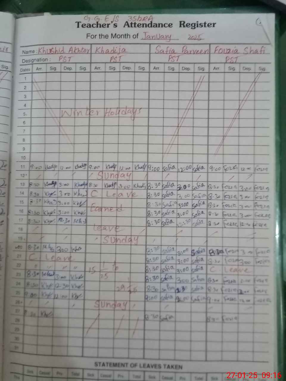 | Leave | Duty | Absent | Maternity | Medical | Ex- Pak |