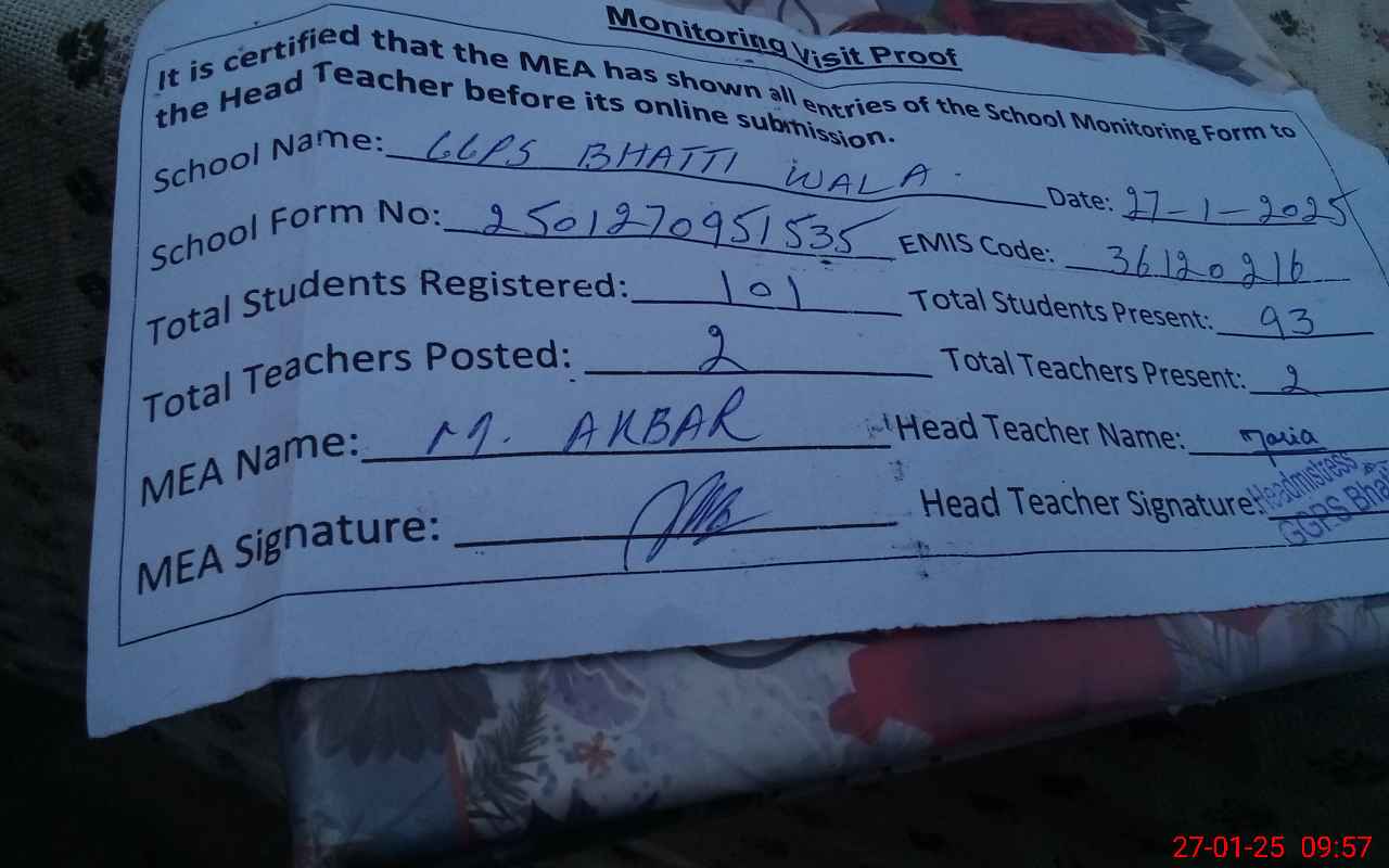 | EMIS Code: 36120216 | Name of School: GGPS BHATTI WALA SHUJABAD | |||