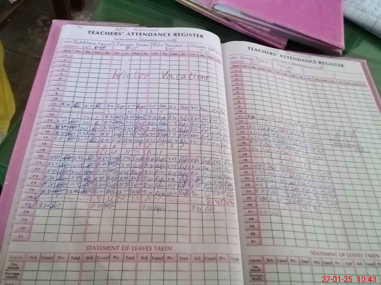 | Leave | Duty | Absent | Maternity | Medical | Ex- Pak |