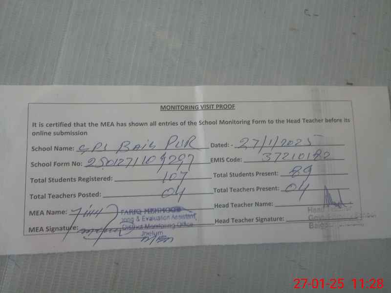 | EMIS Code: 37210182 | Name of School: GPS BAIG PUR | |||