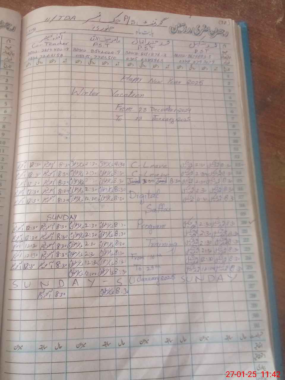| CNIC | Full Name | Designation | R/C | Absence During Last Calender Month |