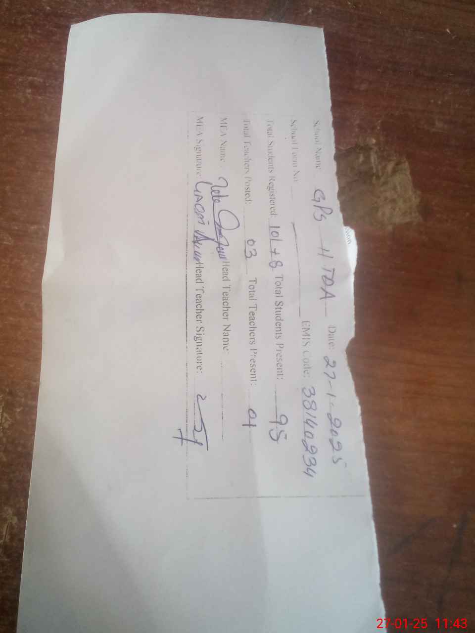 | Attendance Register | Head Teacher | MEA with School | Visit Proof |