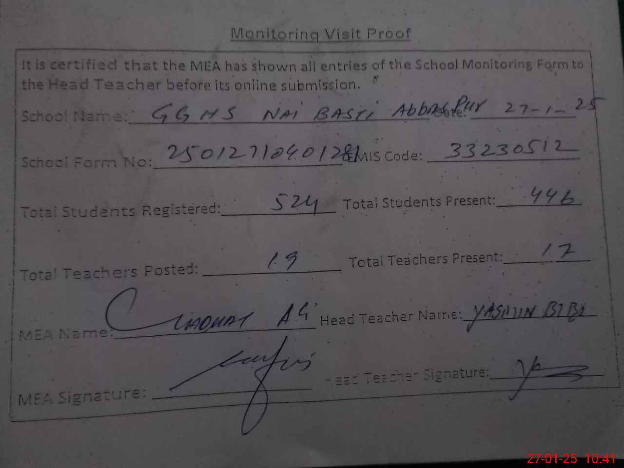 | EMIS Code: 33230512 | Name of School: GGHS NAI BASTI ABBAS PURA SHORKOT SHAHR | |||