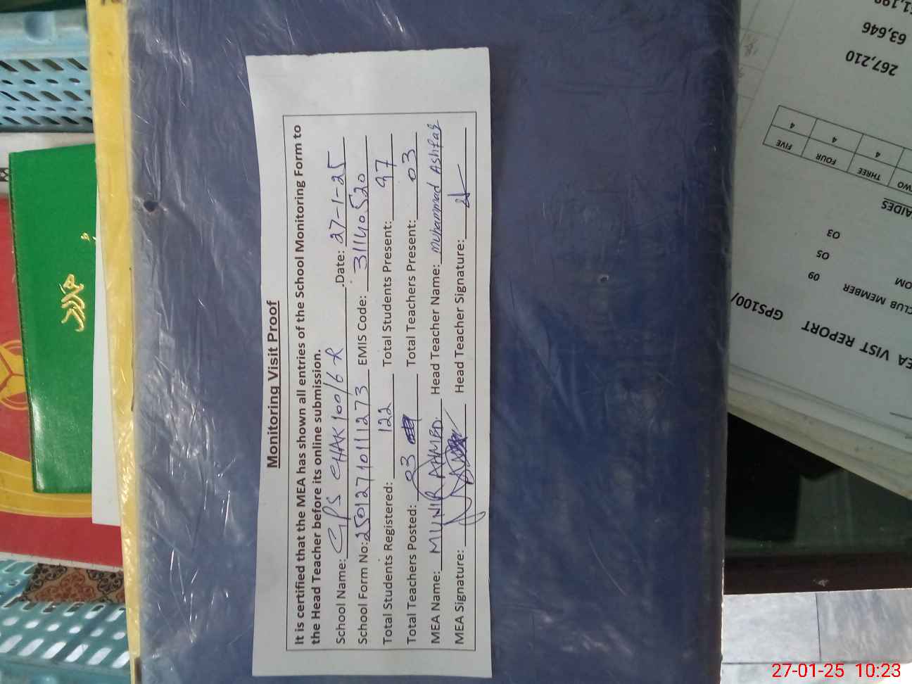 | Attendance Register | Head Teacher | MEA with School | Visit Proof |