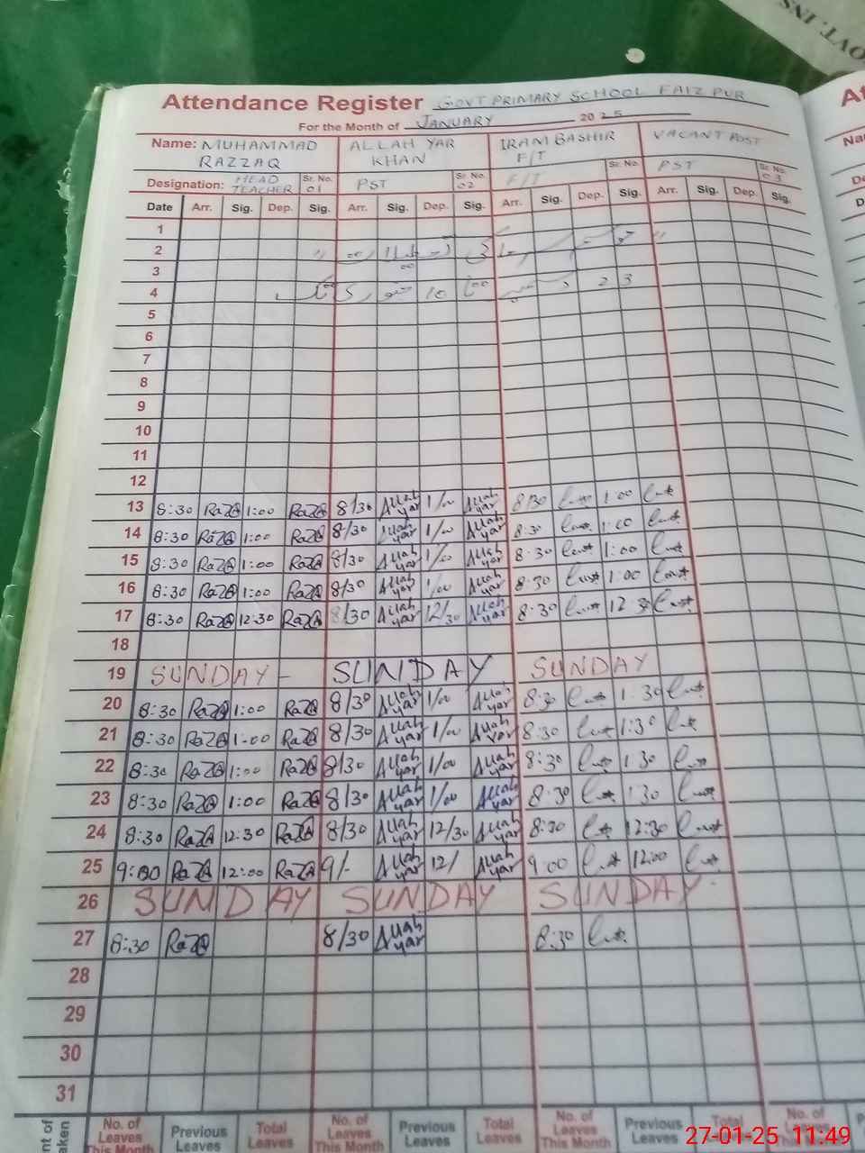 | Name: Mu**** Ra**** Designation: (School Headmaster's/Headmistress's) PST Phone/Cell Number: 03**** |