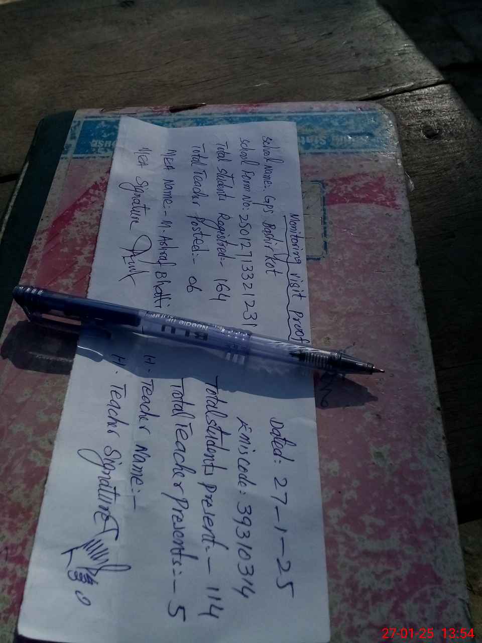 | EMIS Code: 39310314 | Name of School: GPS BASHIR KOT | |||