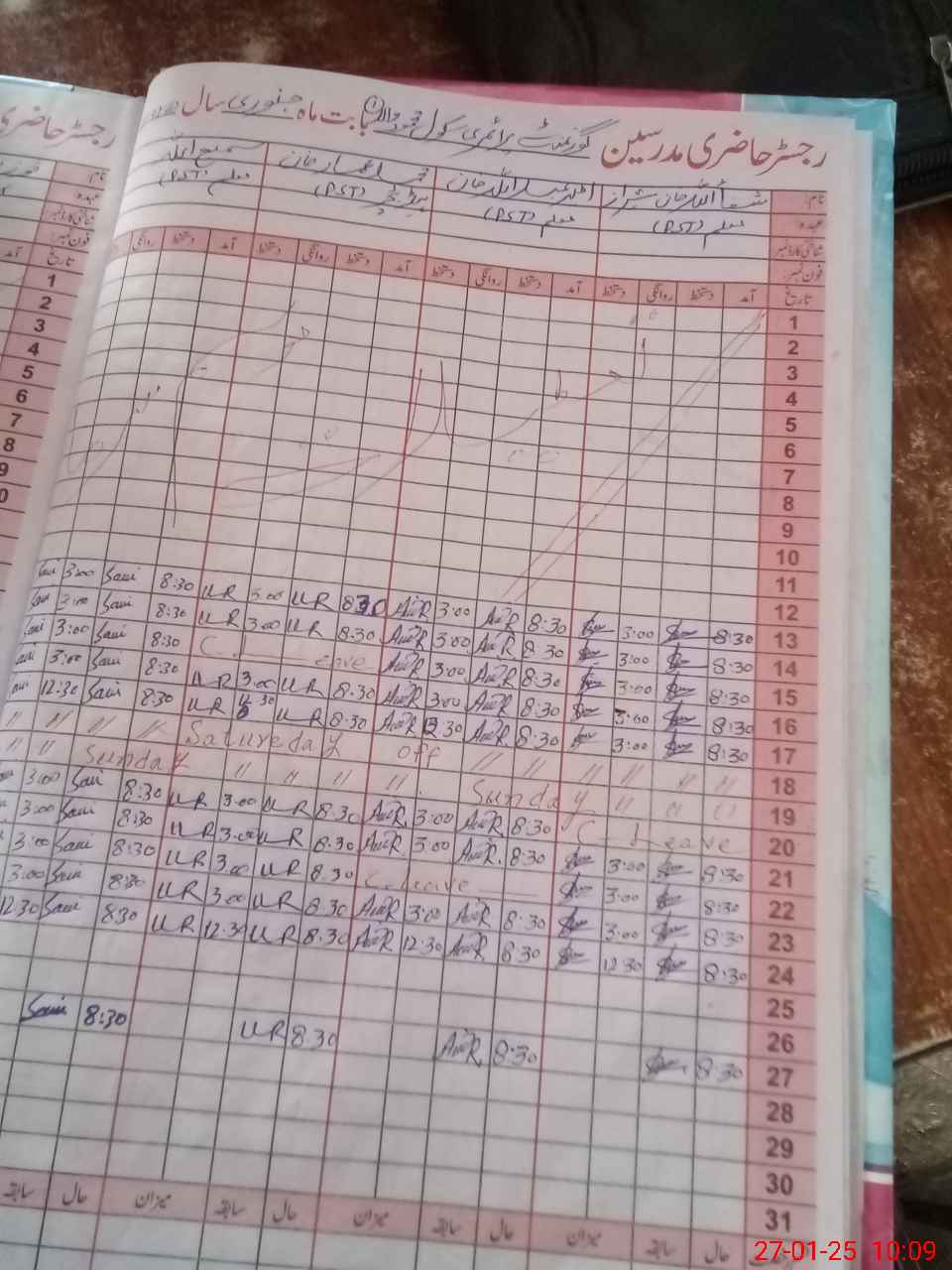| CNIC | Full Name | Designation | R/C | Absence During Last Calender Month |