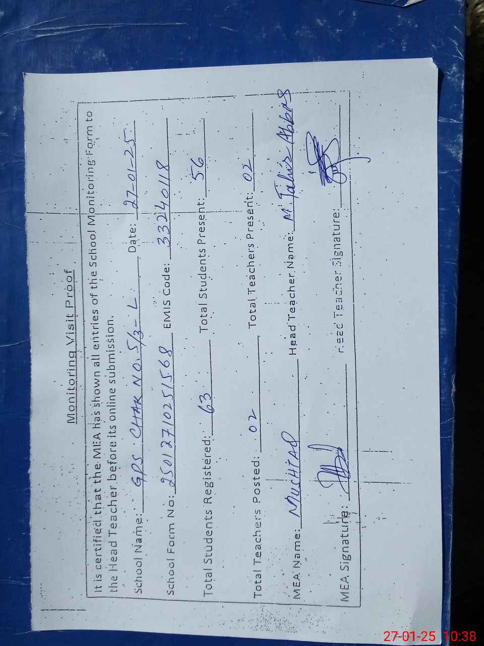 | EMIS Code: 33240118 | Name of School: GPS CHAK NO 5/3 L | |||