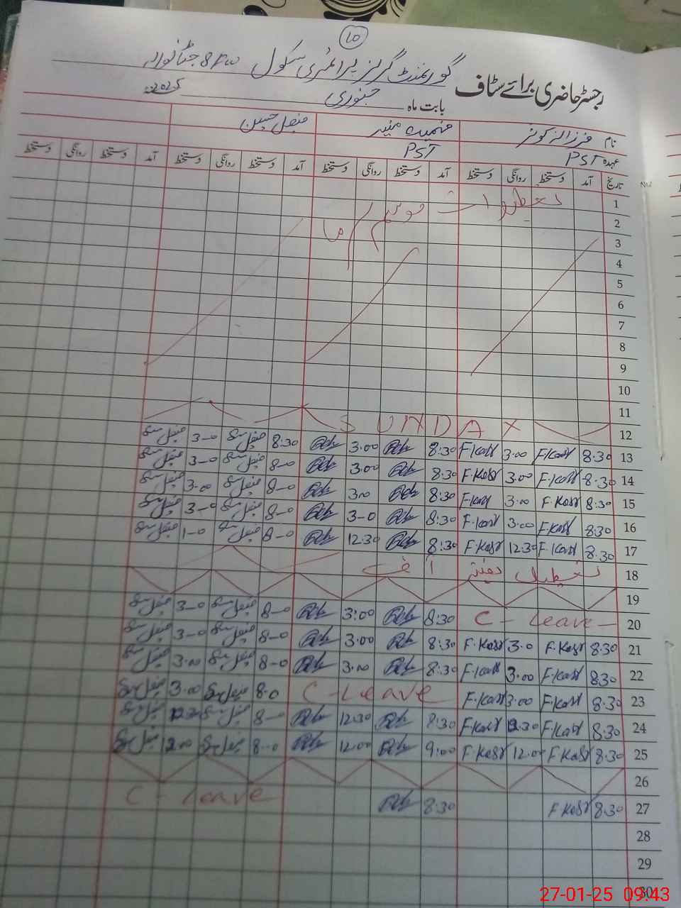 | CNIC | Full Name | Designation | R/C | Absence During Last Calender Month |
