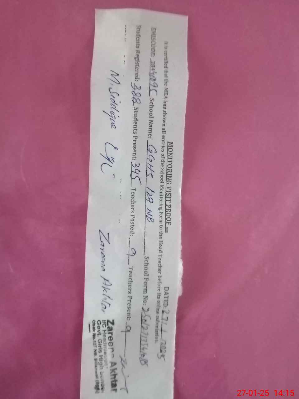 | Name: As**** Sh**** Designation: (School Headmaster's/Headmistress's) SST SCI Phone/Cell Number: 03**** |