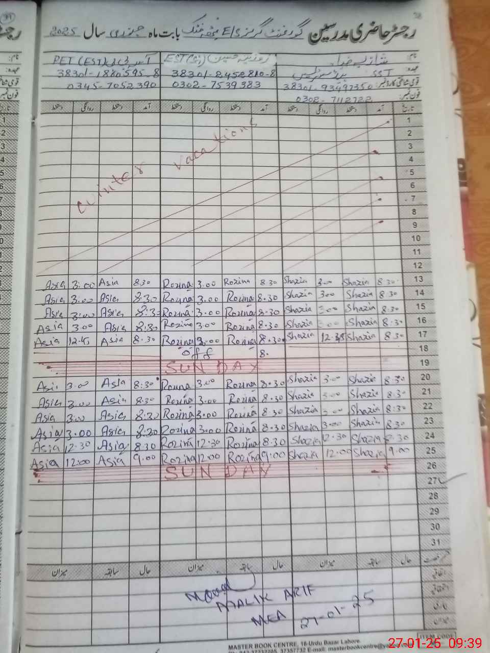 | Name: Sh**** Zi**** Designation: (School Headmaster's/Headmistress's) SST Phone/Cell Number: 03**** |