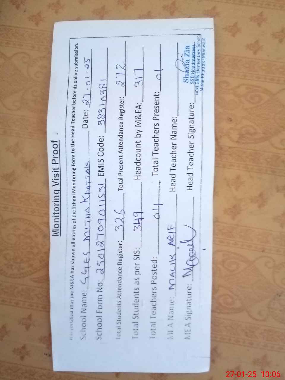 | EMIS Code: 38310381 | Name of School: GGES MITHA KHATTAK | |||
