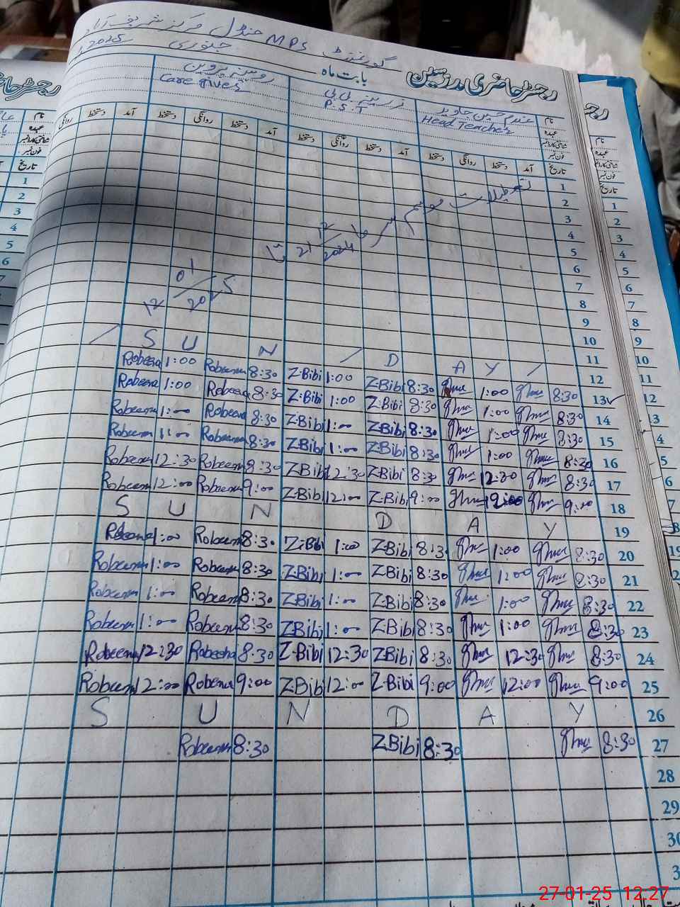 | CNIC | Full Name | Designation | R/C | Absence During Last Calender Month |