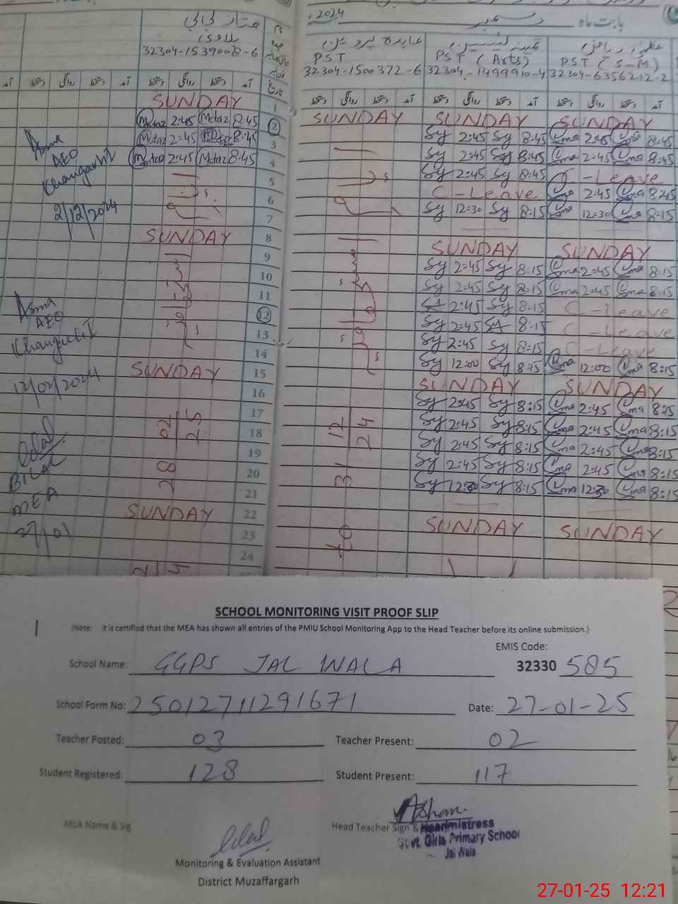 | EMIS Code: 32330585 | Name of School: GGPS JAL WALA | |||