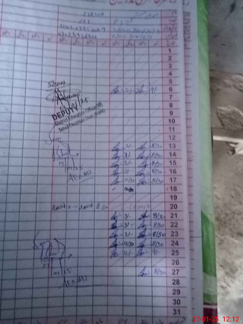 | CNIC | Full Name | Designation | R/C | Absence During Last Calender Month |
