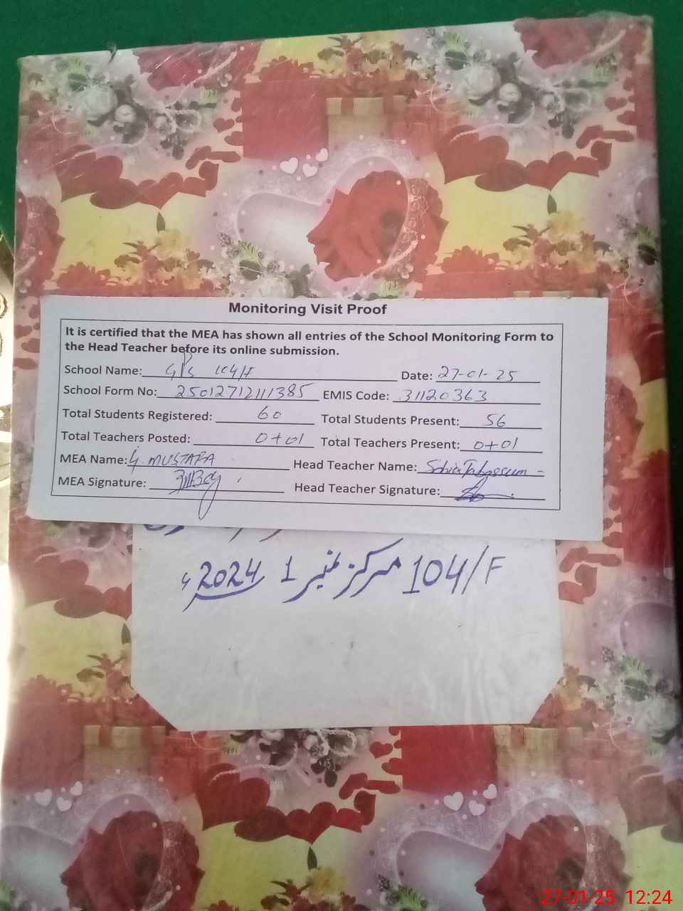 | Attendance Register | Head Teacher | MEA with School | Visit Proof |