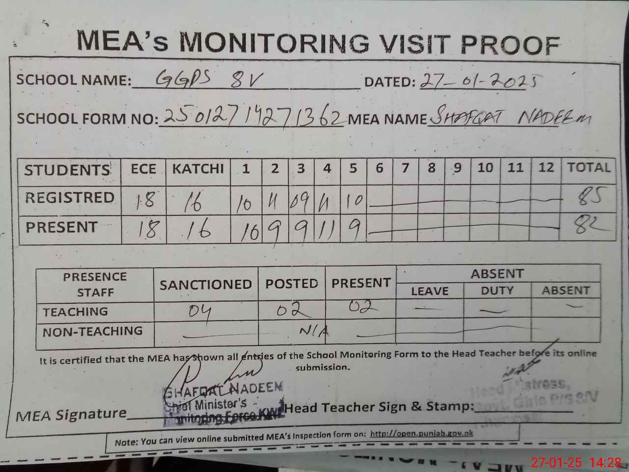 | EMIS Code: 36420381 | Name of School: GGPS 8/V, KHANEWAL | |||