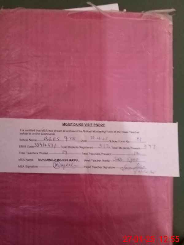 | Name: SA**** IJ**** Designation: (School Headmaster's/Headmistress's) HM Phone/Cell Number: 03**** |