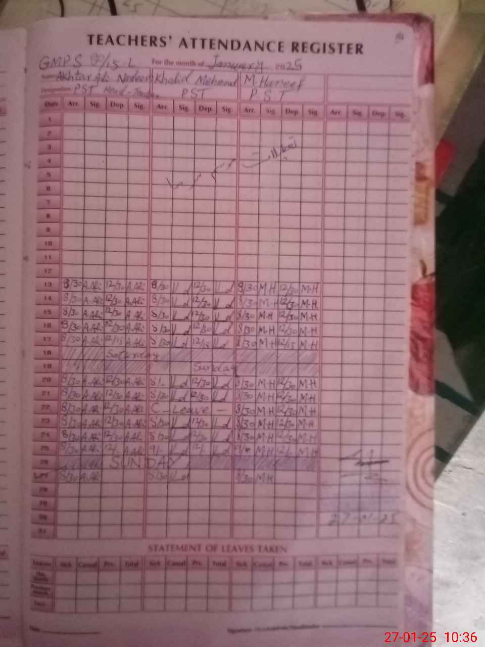 | Name: Ak**** Al**** Designation: (School Headmaster's/Headmistress's) PST Phone/Cell Number: 03**** |