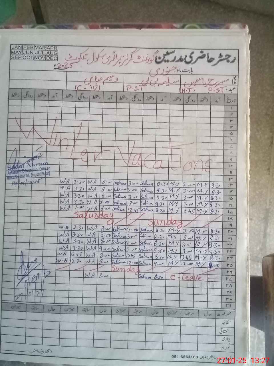 | Name: Mu**** Ya**** Designation: (School Headmaster's/Headmistress's) PST Phone/Cell Number: 03**** |