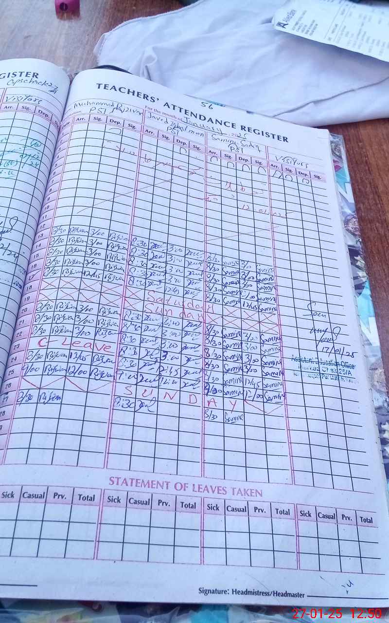| Name: MU**** RI**** Designation: (School Headmaster's/Headmistress's) PST Phone/Cell Number: 03**** |