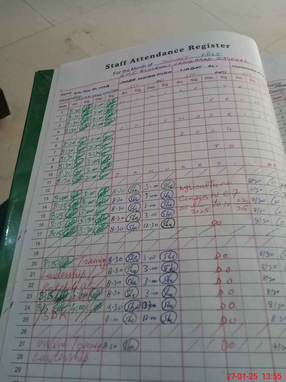 | CNIC | Full Name | Designation | R/C | Absence during last cal. month |