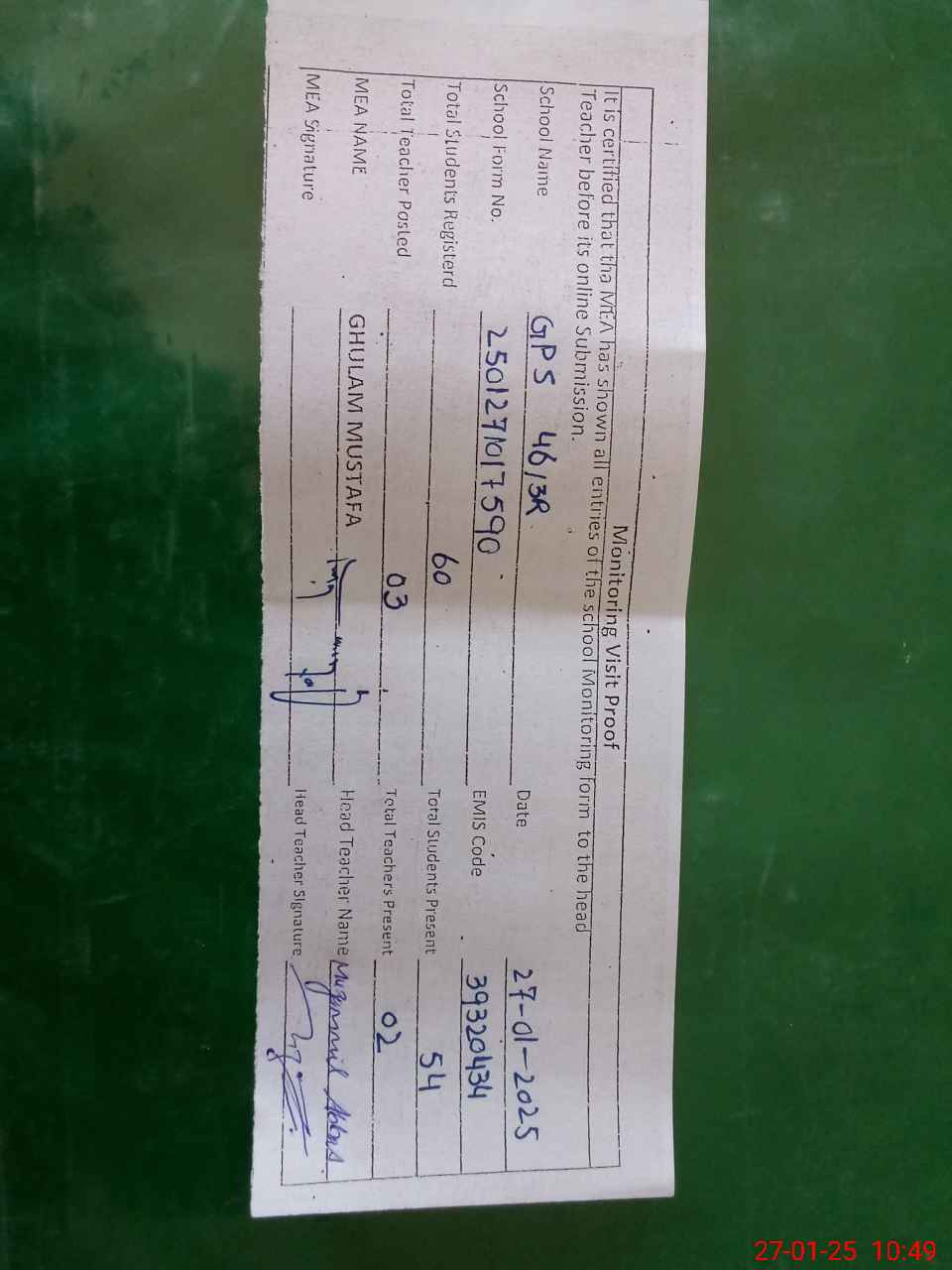 | EMIS Code: 39320434 | Name of School: GPS CHAK NO. 46/3-R | |||