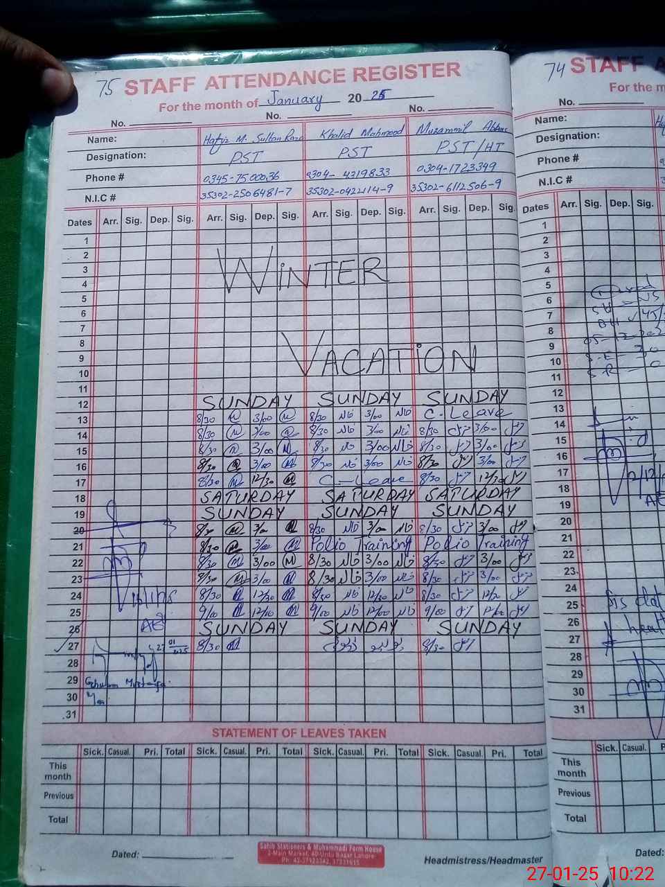 | Name: Mu**** Ab**** Designation: (School Headmaster's/Headmistress's) PST Phone/Cell Number: 03**** |