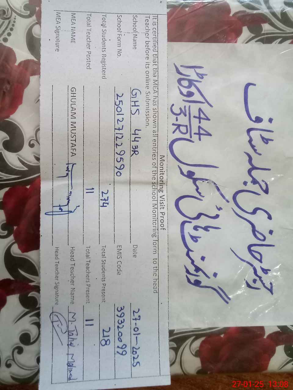 | EMIS Code: 39320099 | Name of School: GHS CHAK 44/3-R | |||