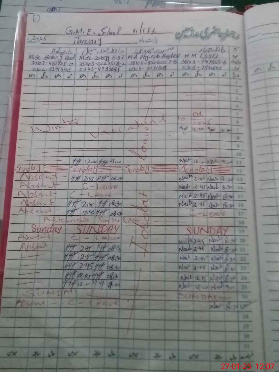 | Name: Na**** Ja**** Designation: (School Headmaster's/Headmistress's) SST(SCIENCE) Phone/Cell Number: 03**** |
